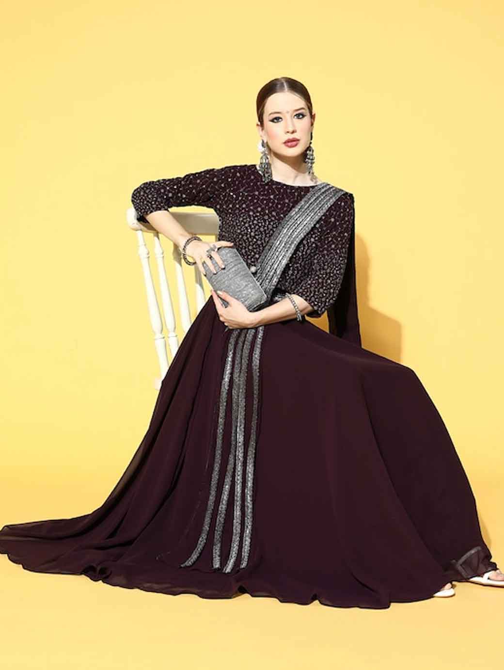 Deep Burgundy Embroidered Ready to Wear Lehenga Choli with Dupatta