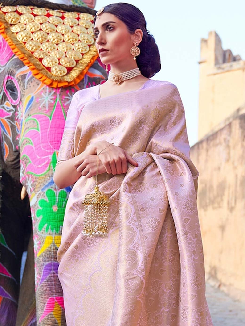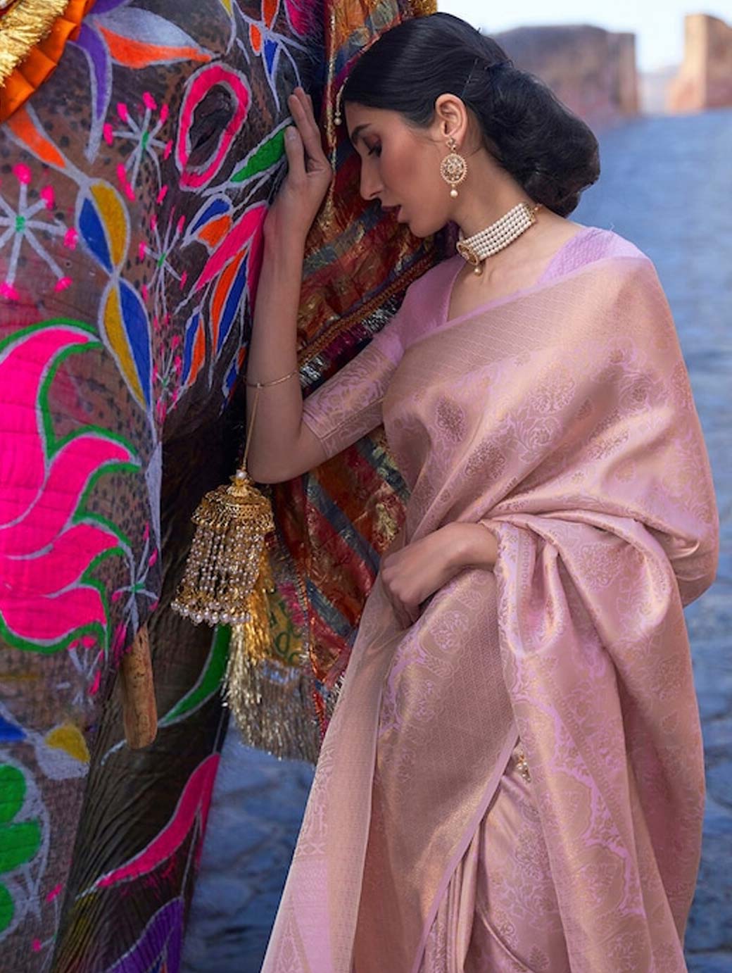 The blouse worn by the model might be for modelling purpose only. Check the image of the blouse piece to understand how the actual blouse piece looks like.