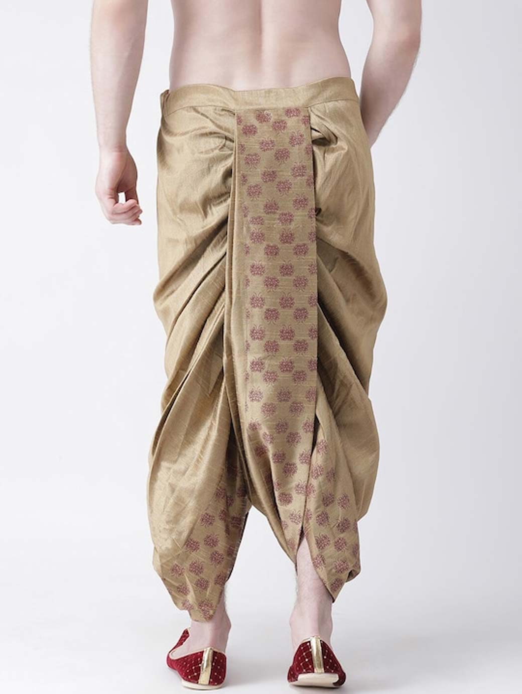 Men Beige & Maroon Printed Dupion Silk Dhoti