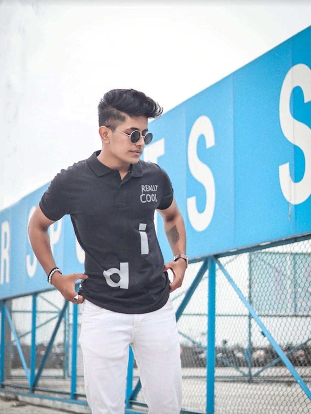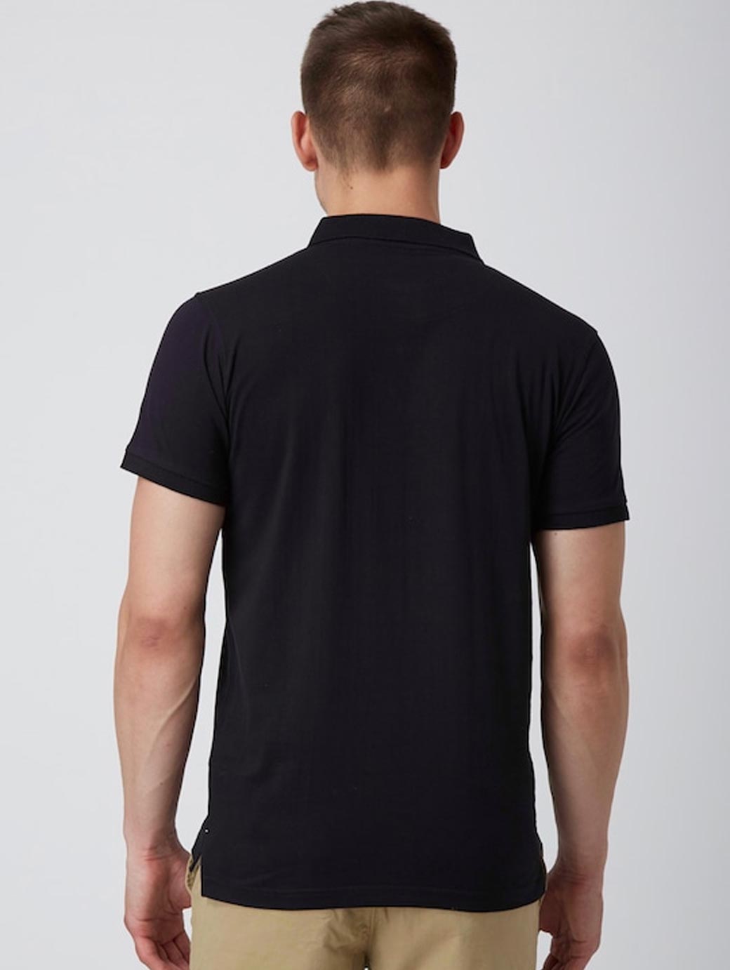 Men Black Printed Polo Collar Slim Fit T-shirt