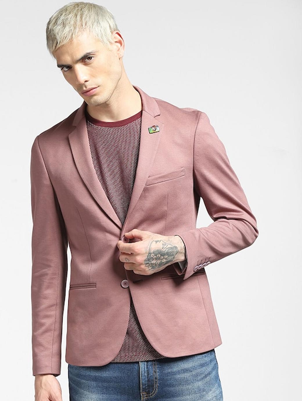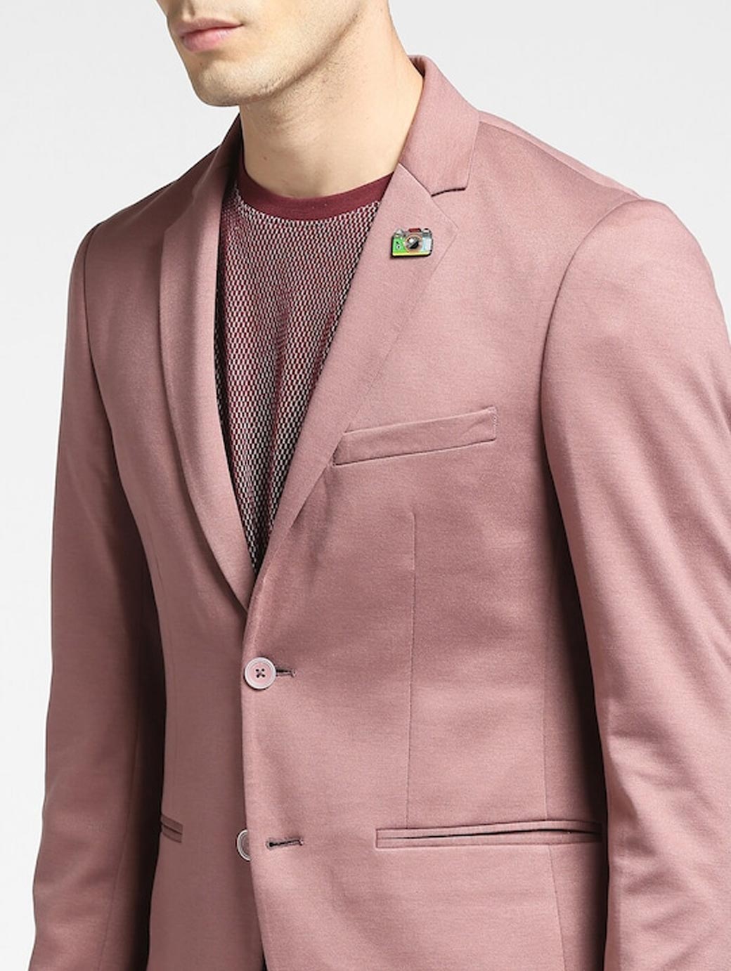 Men Pink Solid Single-Breasted Casual Blazer